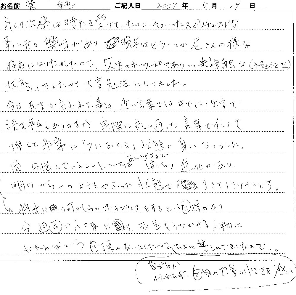 参加します。そして必ず何か手がかりを頂いてます。」 |